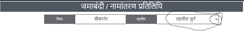 उक्त स्क्रीन में "तहसील चुनें" पर क्लिक करके अपनी तहसील का चयन करें। उसके बाद निम्न स्क्रीन दिखाई देगीः-