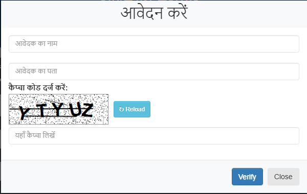 उक्त स्क्रीन में "जिला चुनें" पर क्लिक करके अपने जिले का चयन करें। उसके बाद निम्न स्क्रीन दिखाई देगीः-